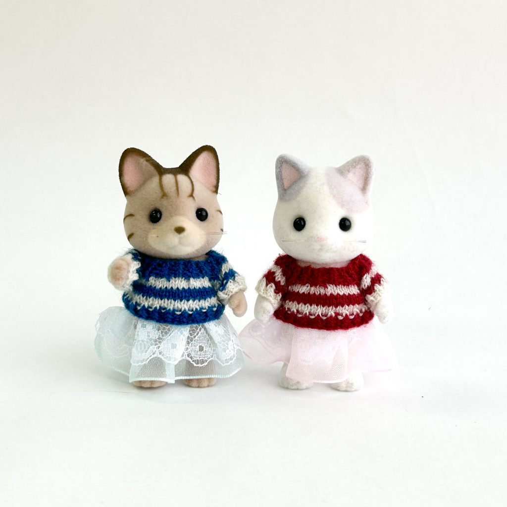 طقم صغير من الملابس المحبوكة بمقاسات للأولاد والبنات. الدمى غير مشمولة.