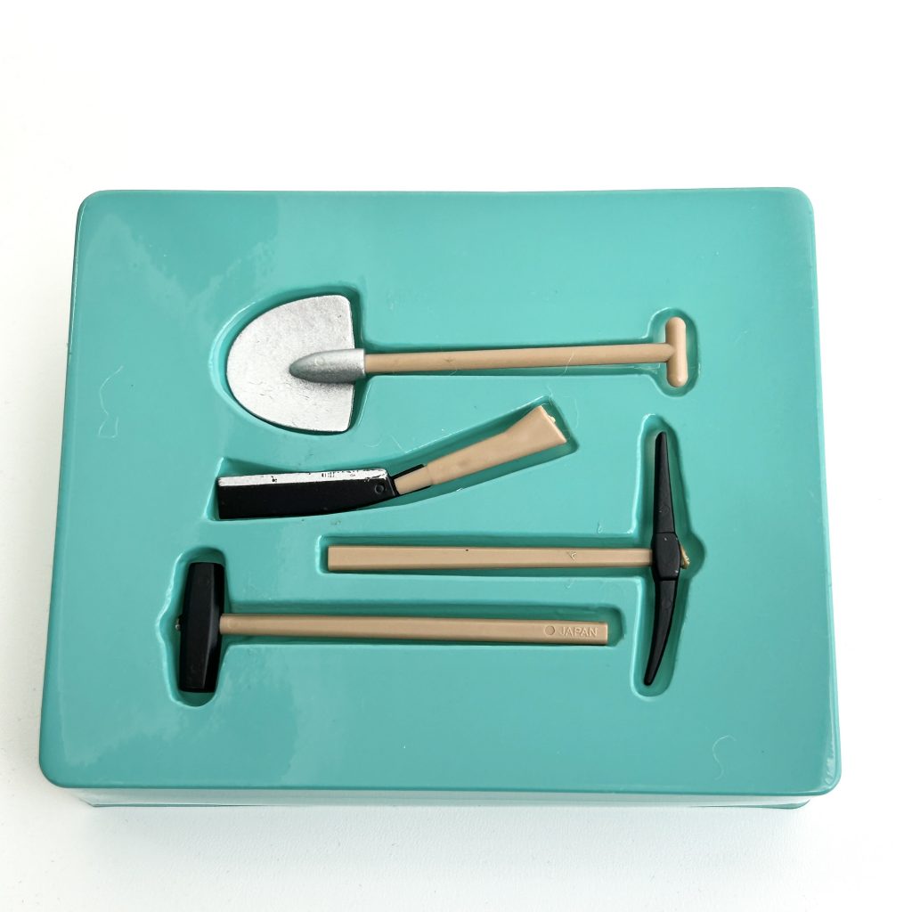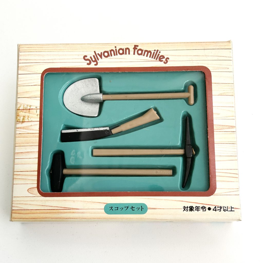 Sylvanian Families Shovel Set. It was relased in 1986, right after Sylvanian Families was launched in 1985. There are no such items in Sylvanian Families history so it is very rare item.