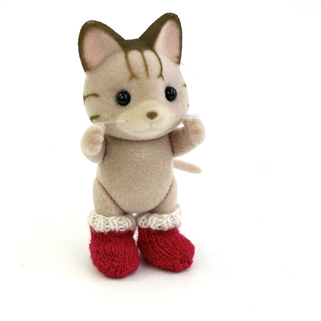 This set includes child-sized socks. They can be enjoyed as Christmas ornaments or worn. The doll shown is not included.