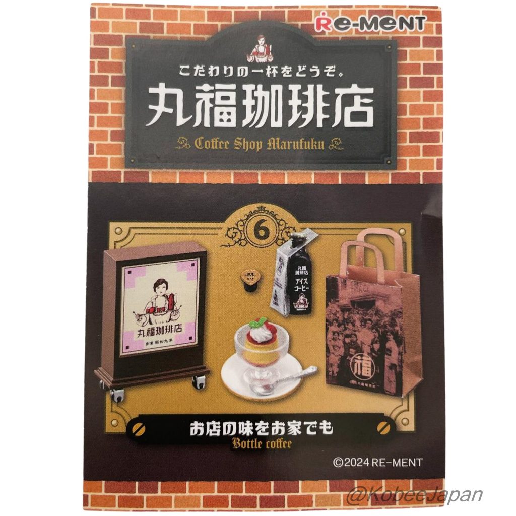 CAFETERÍA MARUFUKU DE RE-MENT, 6 BOTELLAS DE CAFÉ, Japón. Una figura sumamente detallada que captura el ambiente retro del interior de la tienda y su menú cuidadosamente elaborado. Las muñecas no están incluidas.