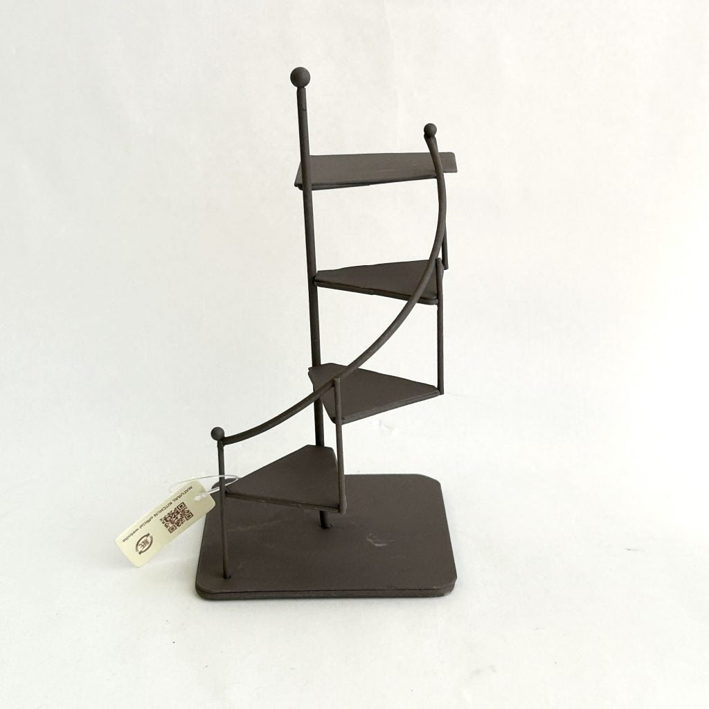 A spiral staircase in chic brown iron that creates an elegant impression. You can place ornaments step by step for display, or combine it with a wooden house and other decorations to enjoy the look of figures climbing up to the second floor. Dolls are not included.