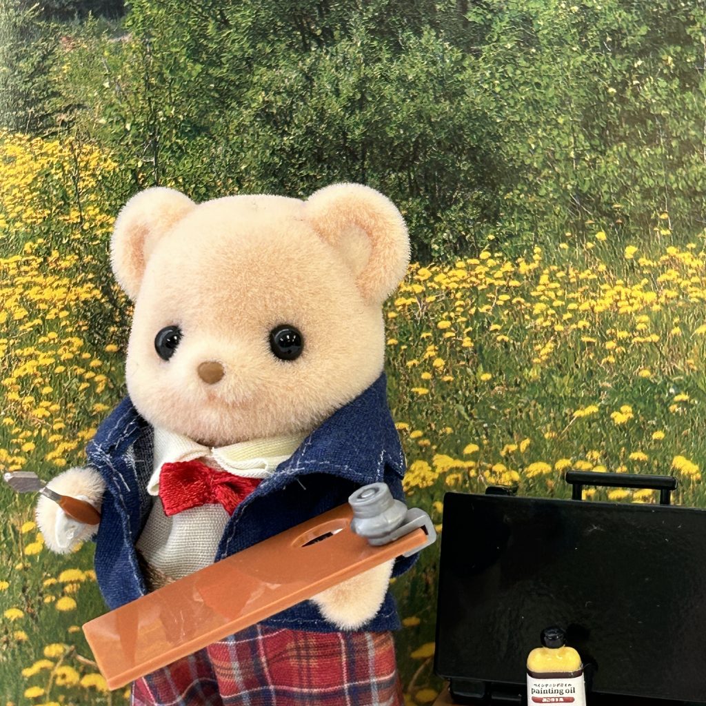 ENSEMBLE DE BOÎTE D’ART MINIATURE CAPSULE TOY MARRON Japon. Cet ensemble comprend une palette en bois, deux pinceaux, une boîte de peinture et un pot d’huile.
