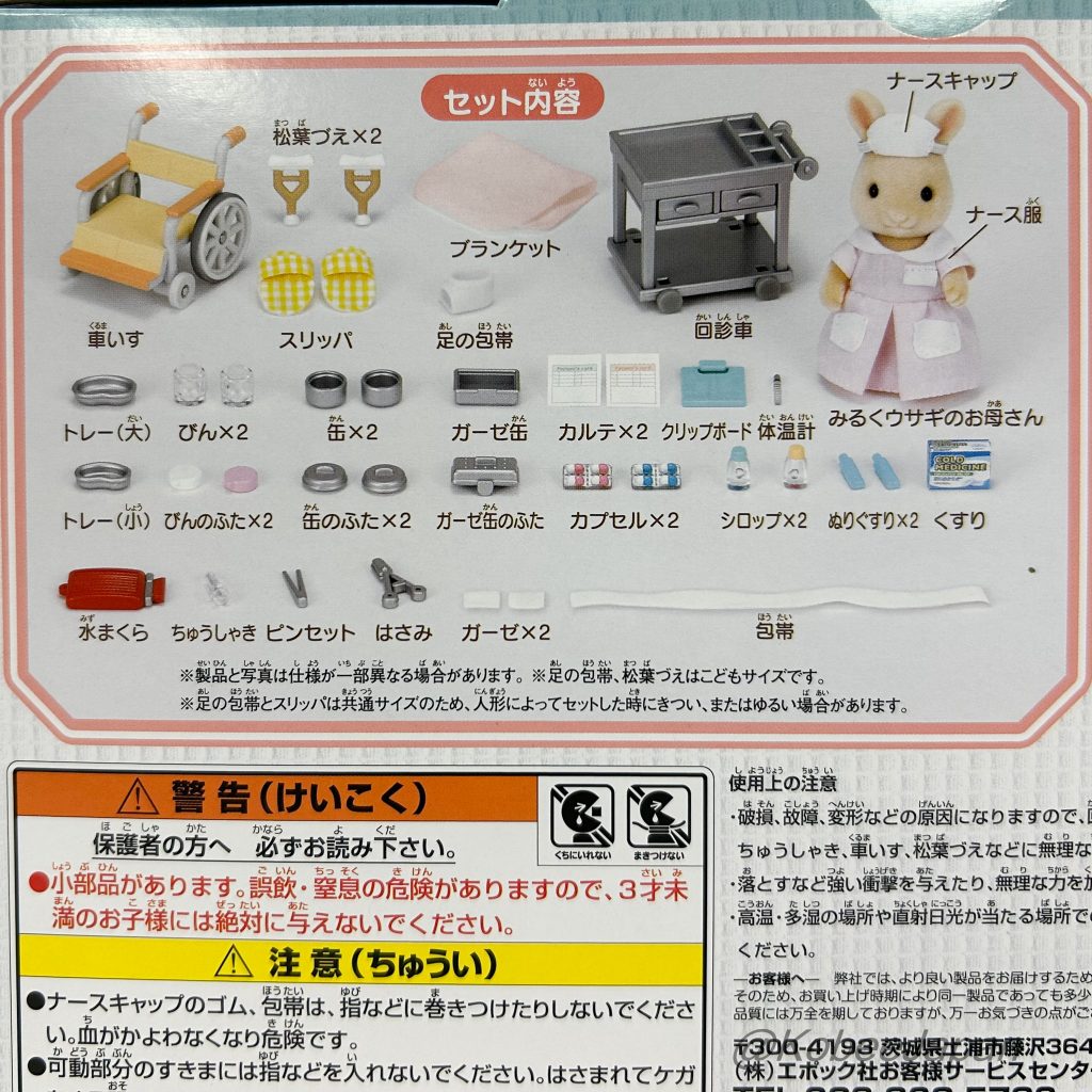 Il est sorti en 2013. Il s'agit d'une reproduction du NURSE SET H-02 qui a été lancé en 2002. La mère lapin lait est une infirmière. C'est un ensemble qui comprend des accessoires tels que seringue, thermomètre, fauteuil roulant, dossier médical, médicaments, etc., nécessaires aux infirmières. Vous pouvez jouer avec le « COUNTRY CLINIC » vendu séparément. Figurine incluse.